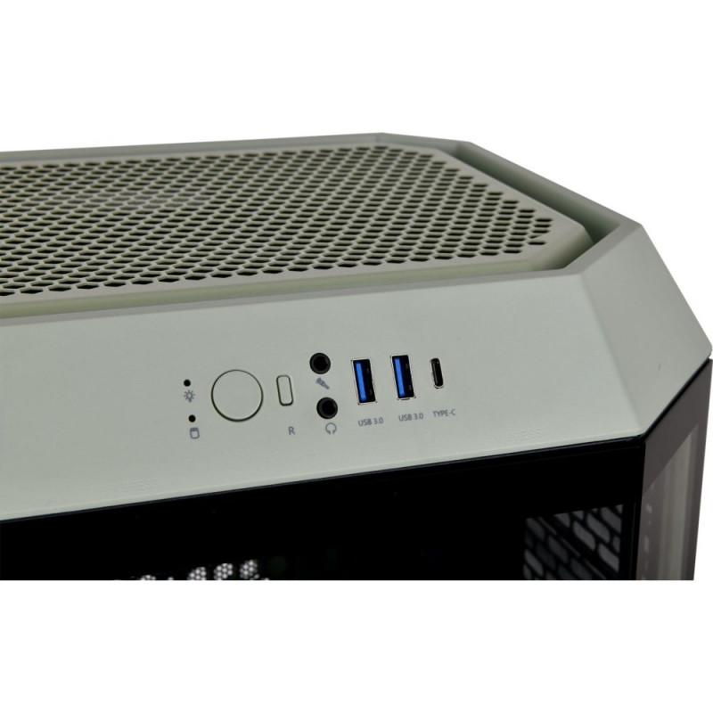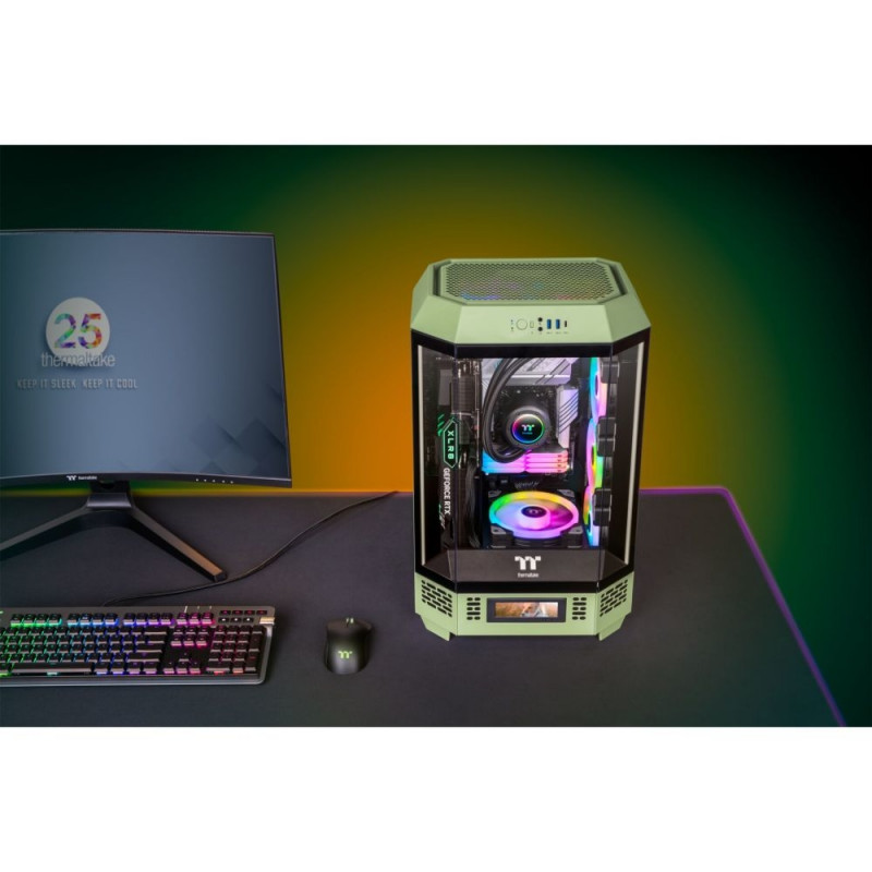 The Tower 300 Matcha Green is an m-ATX case in a classic vertical design with an octagonal prism shape. It supports up to 420 mm AIO coolers on the right-hand side and offers space for up to eight 120/140 mm fans. In addition, The Tower 300 can be expanded with a separately available LCD panel kit with a 3.9-inch LCD screen to maximize the visual effects of the PC.