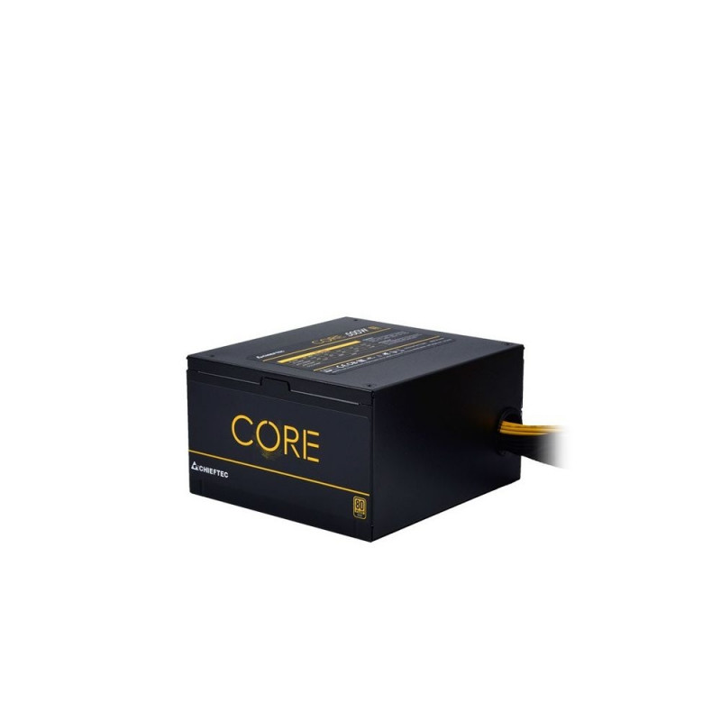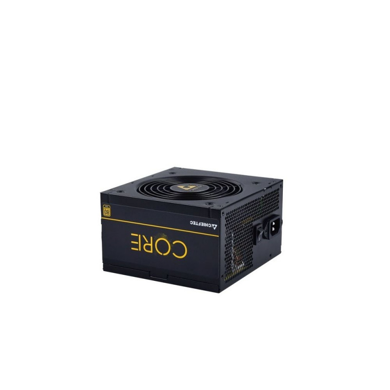 The Chieftec Core BBS-500S is a reliable 500 W power supply unit, featuring 80 PLUS Gold certification for high efficiency and active Power Factor Correction (PFC). It supports a wide input voltage range of 100 - 240 V and operates with a frequency of 47 - 63 Hz.