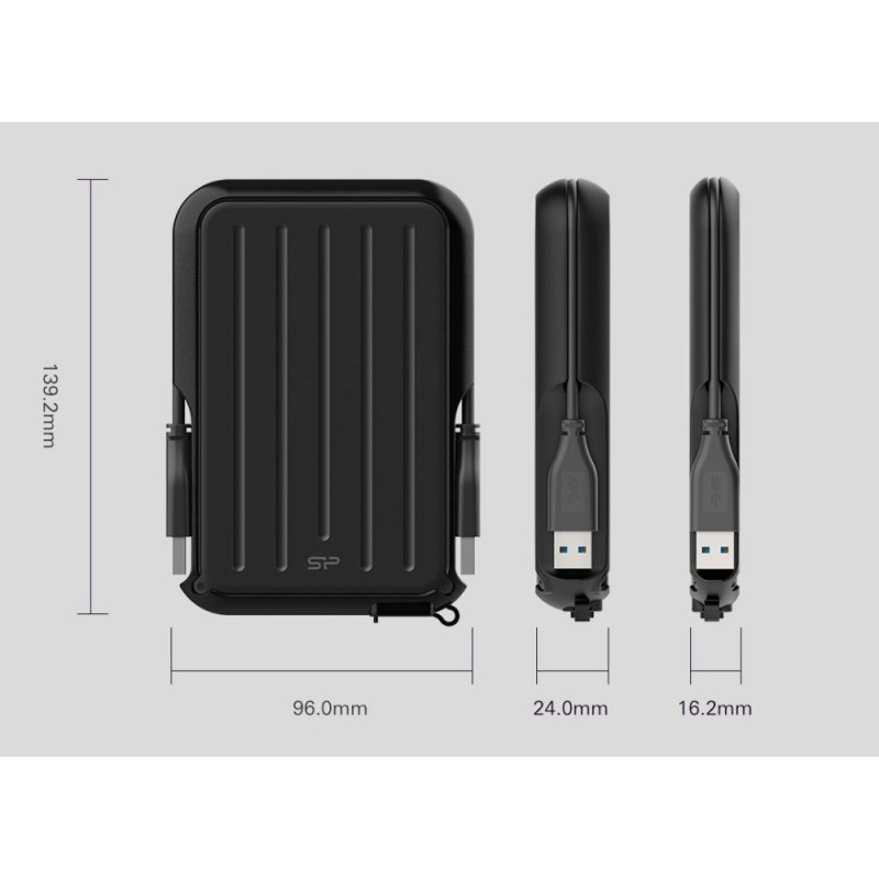 The Silicon Power A66 external hard drive is a water-resistant storage device designed for easy data transfer and backup. It supports various operating systems, including Windows and Linux.