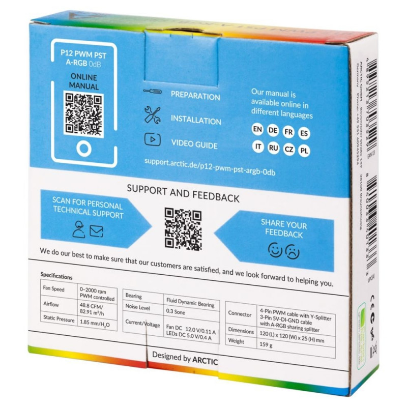 ARCTIC P12 PWM PST A-RGB 0dB - Semi-Passive 120 mm Fan with Digital A-RGB in white