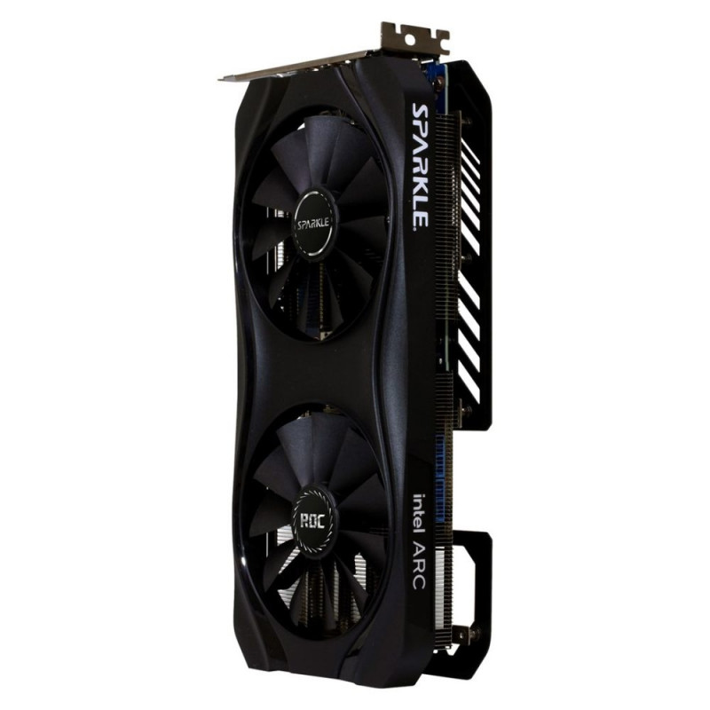 The Sparkle Intel Arc A770 ROC 16GB Black graphics card supports up to 7680 x 4320 pixels maximum resolution and features Ray Tracing capability. It has a 2300 MHz processor frequency, 32 processor cores, and a minimum system power supply requirement of 650 W.Product has been archived