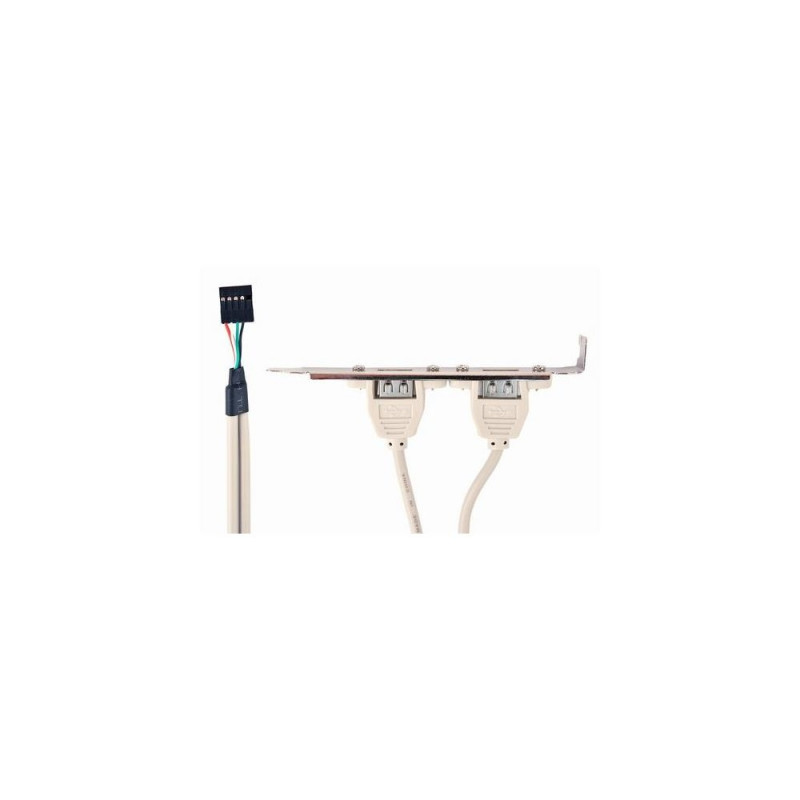 Double USB Receptacles on bracket<br> 10P housingGembird Dual USB Receptacles on bracket. Output interface: USB 2.0. Product colour: Grey, Metallic. Quantity per pack: 1 pc(s), Package width: 110 mm, Package depth: 120 mm. Cable length: 0.25 mProduct has been archived