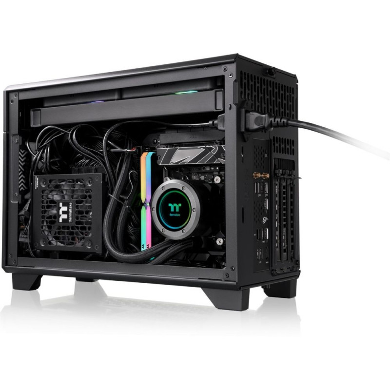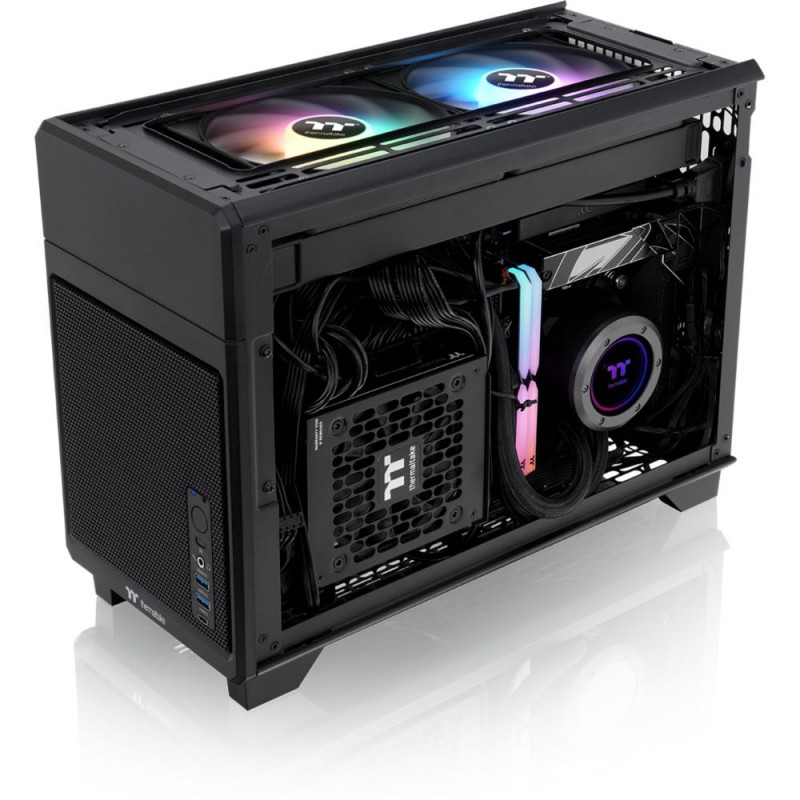 Despite its compact footprint, the TR100 still has good hardware support. It can support a CPU cooler with a maximum height of 68mm, a GPU with a maximum length of 360mm (and up to 70mm in width), a power supply with a length of up to 130mm, and two 2.5" SSDs. For cooling support, up to two 120mm/140mm fans or a 280mm all-in-one CPU cooler can be placed on top of the chassis for effective cooling.