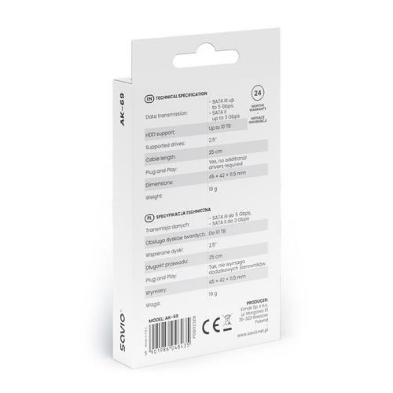 Adapter USB-C 3.1 Gen 1 do SATA 2,5″ AK-69<br>USB-C adapter AK-69, is a cable characterized by high quality and reliability. You can transfer data, charge devices, and connect accessories. Thanks to the Plug&Play function, the electronic acWarning: Last items in stock!