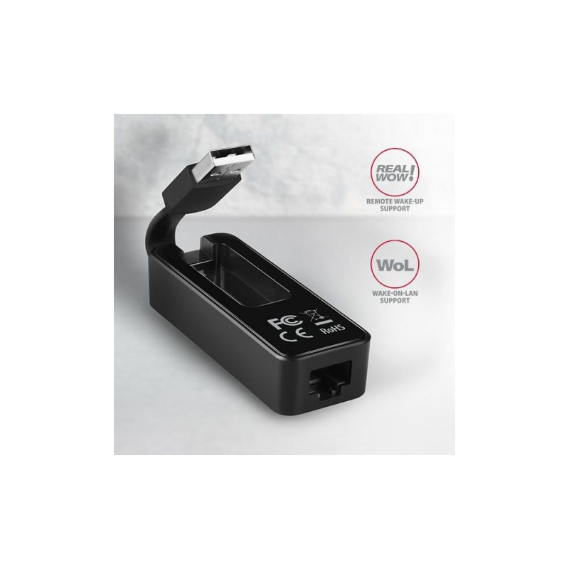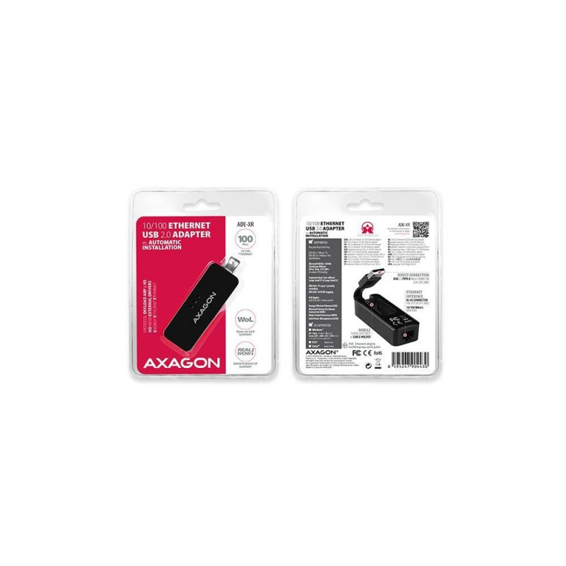 The compact AXAGON ADE-XR adapter easily converts USB 2.0 port to Fast Ethernet 10/100Mbit port.