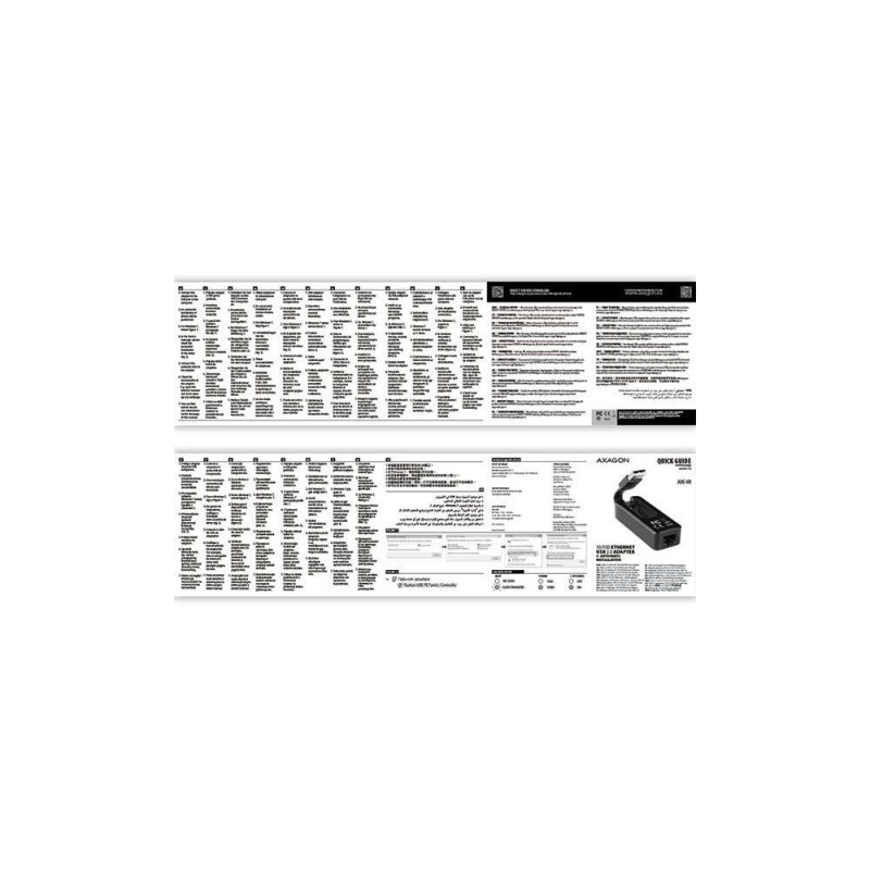 | Summary | Axagon ADE-XR USB 2.0 fast ethernet. Connectivity technology: Wired, Host interface: USB, Interface: Ethernet. Maximum data transfer rate: 100 Mbit/s. USB powered. Product colour: Black |