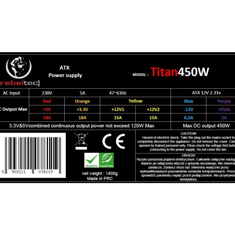 | Power supply | 450 W |
