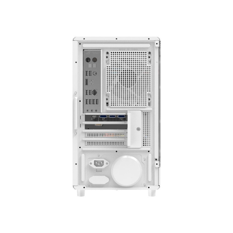 Separate space for cables and multiple portsThe back of the case features a contoured space and pass-through holes for orderly cable routing. This layout makes it easier to install components and improves airflow in the main compartment. The front panel features a USB 3.0 port, 2 USB 2.0 ports, one HD Audio port and a power button. This allows you to enjoy quick access to basic functions without having to reach the back of the case.