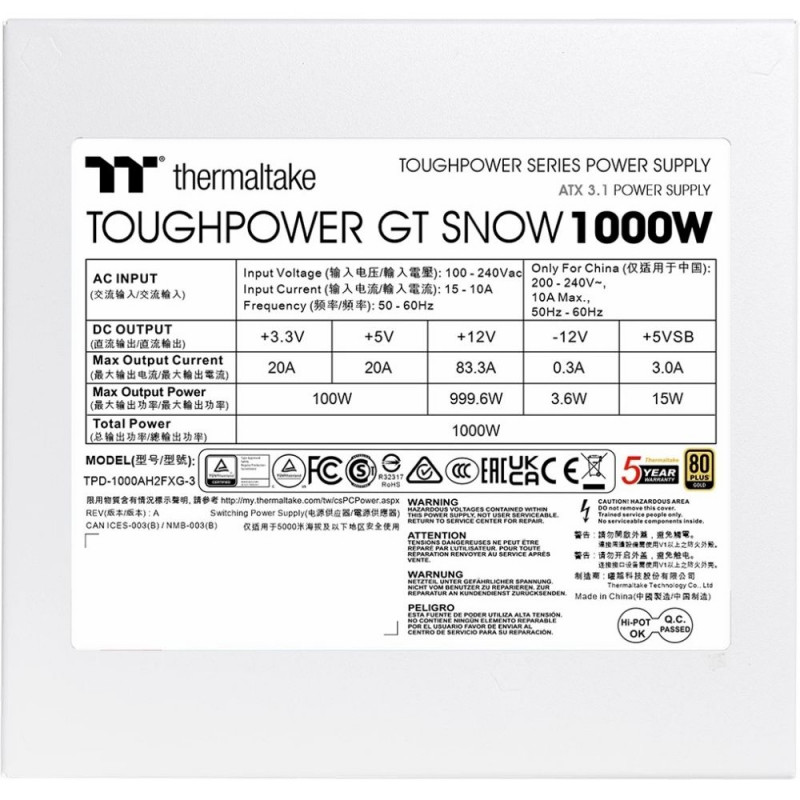 "1000W Thermaltake Toughpower GT 1000W Snow ATX3.1 80+G WH"