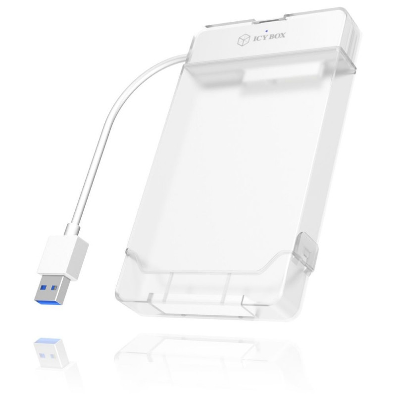The ICY BOX IB-AC703-U3 adapter turns your 2.5" SATA hard drive or SSD into an external USB 3.0 drive. With up to 5 Gbit/s data transfer rate and UASP support, it delivers fast and efficient performance. The robust plastic housing protects your hard drive and allows easy handling.