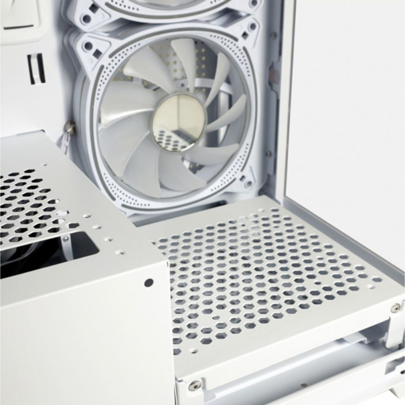 With four integrated 120 mm ARGB case fans, a special eye-catcher is offered. The desired color can be easily set on the I/O panel or by the RGB motherboard software. If you want to bring a little more color into your system, the slightly tinted front & side windows made of tempered glass can bring out the interior of the PC aesthetically.