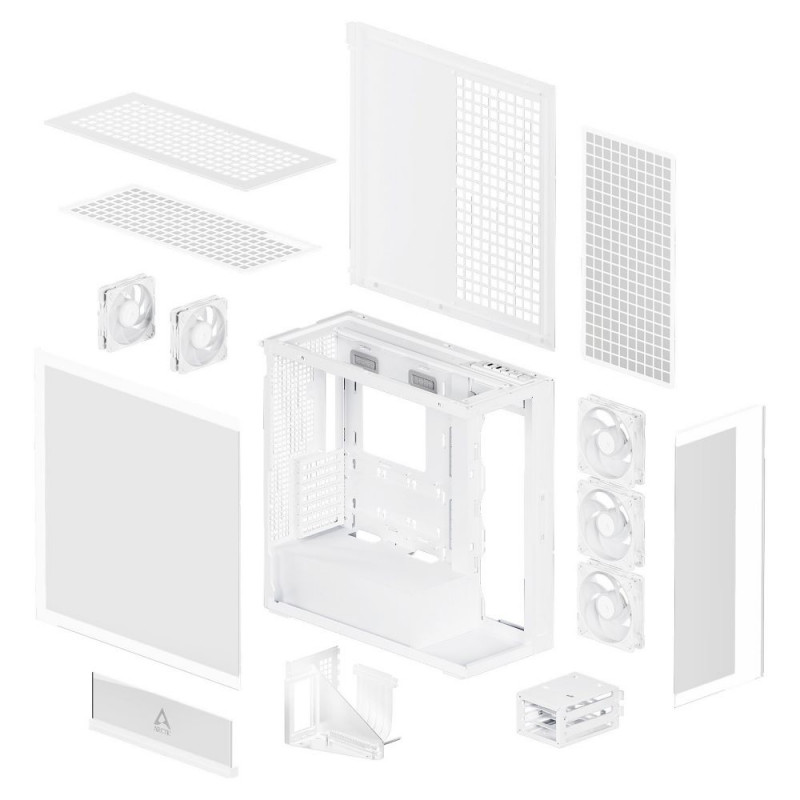 "Arctic Xtender (White) transparent window with GPU vertical mount"