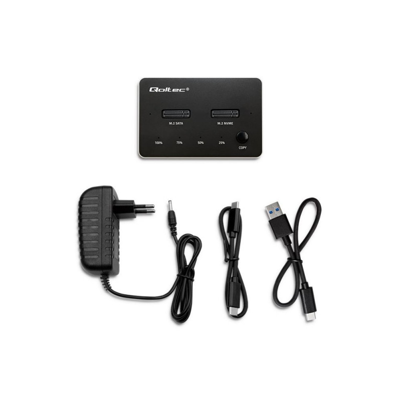 Qoltec M.2 SSD Docking Station | NVMe| SATA | USB-C | DUAL 2 x 2TB