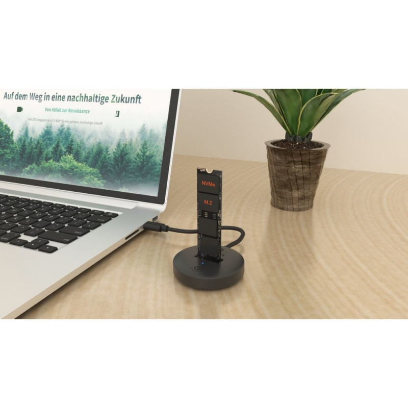 With the compact IB-1610MCD-C31 docking station, you can access your M.2 NVMe or SATA SSD quickly and easily. The integrated USB-C cable saves space and eliminates the need for extra cables. The tool-free open slot design lets you swap SSDs in seconds - useful for travel or quick access at the office.