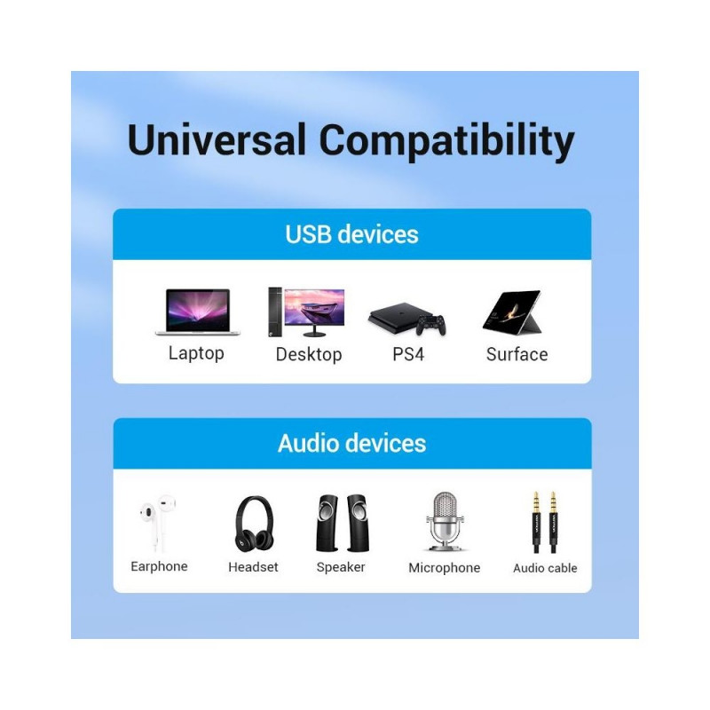 | Ports & interfaces | Headphone connectivity - 3.5 mm, Headphone outputs - 1, Host interface - USB, Line-in - Yes, Line-out - Yes, Plug and Play - Yes |