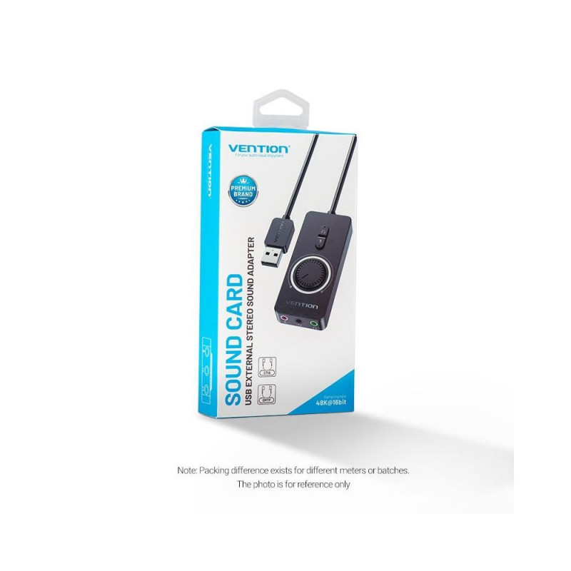 | Summary | Vention USB 2.0 External Stereo Sound Adapter with Volume Control 0.15M Black ABS Type. Audio quality: 16 bit, Frequency range: 44100 - 48000 Hz. Host interface: USB, Headphone connectivity: 3.5 mm. Control type: Buttons, Number of buttons: 2 buttons, Cab |