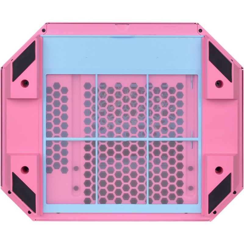 Das Tower 300 Bubble Pink ist ein m-ATX-Gehäuse, das durch sein klassisches vertikales Design und die achteckige Prismenform besticht. Es bietet Platz für bis zu acht 120-mm/140-mm-Lüfter und unterstützt einen 420-mm-AIO-Radiator auf der rechten Seite. Mit dem separat erhältlichen Chassis Stand Kit kannst du das Gehäuse horizontal platzieren und eine einzigartige Ansicht genießen.