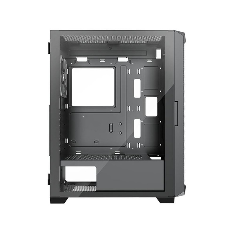 - No visible screws on the tempered glass side panel; the panel opens smoothly with hinges