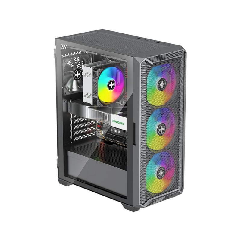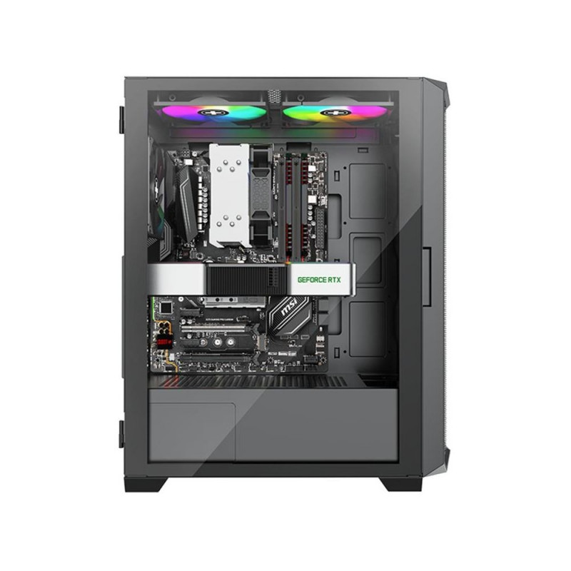 Three ARGB fans in the front illuminate the PC, creating a unique gaming atmosphere.