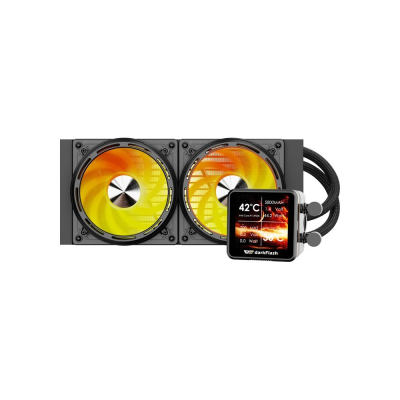 Explore DE240 is a water cooler that is designed for high performance and striking appearance. The 2.88-inch magnetic IPS screen used displays system data in real time, and the ability to detach it and attach it to any metal surface of the case gives you a lot of freedom in interior design. The kit is equipped with two 120-millimeter PWM fans with ARGB illumination, which provide solid cooling even for powerful processors with TDPs of up to 315 watts.