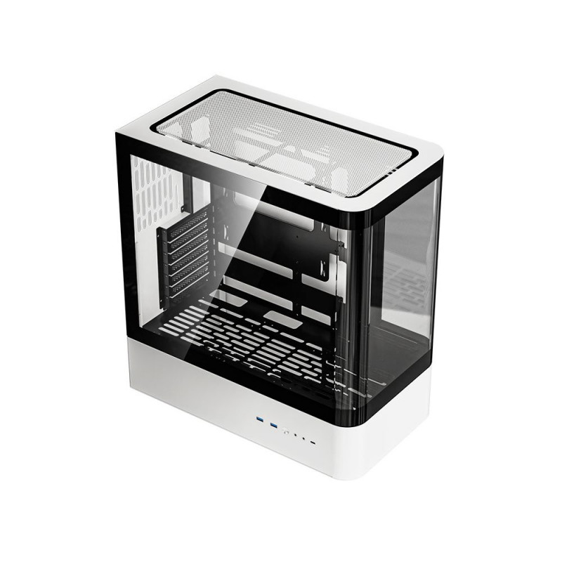DarkFlash HM1 is a midi tower computer case that supports ATX, M-ATX and ITX format motherboards, while offering up to seven 120 mm fan slots and the ability to mount up to 360 mm of water cooling on top of the case. The internal space allows for the installation of graphics cards up to 380 mm in length and CPU coolers up to 175 mm in height. A side panel of curved tempered glass with anti-reflective coating provides a clear view of components, while the modular design and hidden cable routing system facilitate neat installation. The front features high-speed USB 3.0 and USB-C connectors, which translates into convenient support for external devices.
