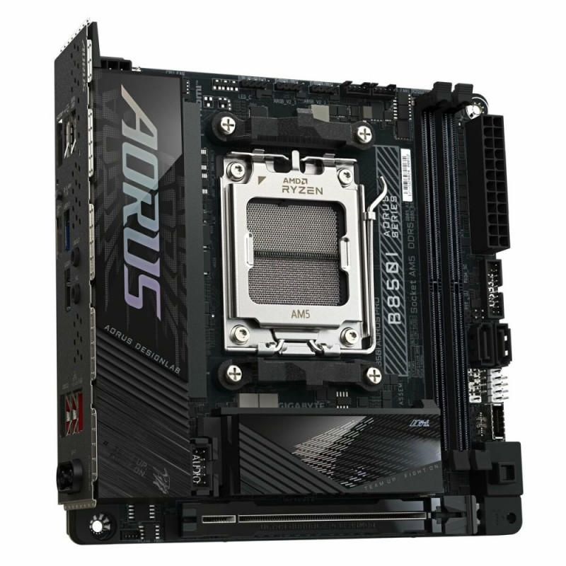 The B850I AORUS PRO motherboard from Gigabyte is a Mini-ITX motherboard designed to offer advanced compatibility with the latest generation of processors through its AMD AM5 socket. It features the AMD B850 chipset, providing an optimal balance between performance and efficiency for compact systems, making it especially suitable for high-performance small-form-factor PCs. This motherboard stands out for its ability to integrate modern components, ensuring stable support and updates thanks to the AMD AM5 architecture, guaranteeing compatibility with the latest CPUs and technologies in the AMD ecosystem. Its technical features include essential connections for multimedia and graphics systems, such as its HDMI port, enabling high-definition video output. The black and brown color scheme conveys a sober and professional aesthetic, compatible with PC setups seeking both performance and style in limited spaces. Manufactured in China, the B850I AORUS PRO belongs to Gigabyte’s series 1 motherboards, ensuring a reliable product with industry-recognized quality standards. This model is an ideal choice for users needing a compact solution without sacrificing the power and flexibility offered by the AMD AM5 platform. In summary, the B850I AORUS PRO represents a versatile and technical foundation for building a modern, efficient Mini-ITX PC.
