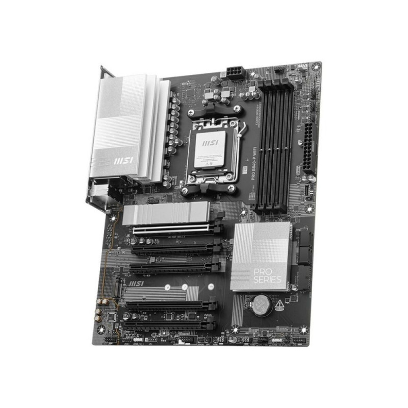 The MSI PRO B840-P WIFI motherboard is an advanced solution designed for systems based on the AMD AM5 platform, compatible with the latest processors of this architecture. In ATX format, it offers ample space for component installation and optimal thermal management in high-performance PC setups. This motherboard integrates the AMD B840 chipset, supporting DDR5 memory with up to four slots, allowing a maximum capacity of 256 GB that ensures smooth multitasking performance and fast response in demanding applications. For connectivity, the PRO B840-P WIFI comes equipped with a high-speed 2.5 Gigabit Ethernet network interface, as well as support for Wi-Fi 7 and Bluetooth 5.4, providing stable and fast wireless connection options ideal for office or gaming environments. Its design includes multiple storage options with four SATA 3 ports and two M.2 slots, facilitating the installation of NVMe SSD drives for accelerated system and program loading. Regarding video output, it features an HDMI 1.0 port that enables direct connection to compatible monitors or TVs. It also offers multiple high-speed USB ports, including the modern USB Type-C and four USB 3.2 ports, allowing quick and efficient connection of peripherals and external devices. The MSI PRO B840-P WIFI has a black finish, incorporating elements such as AURA Sync technology for customizable RGB lighting, adapting to modern aesthetic setups. This motherboard is a balanced choice for users seeking current features and stability in systems with the latest generation AMD processors, combining advanced connectivity, expansion capacity, and robust design within the ATX segment. Overall, the PRO B840-P WIFI model reflects MSI’s commitment to functionality and compatibility on cutting-edge platforms for general and professional computer use.