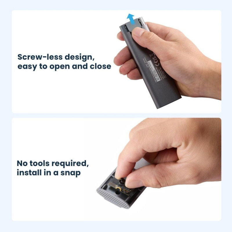 The External Hard Drive by Ewent offers an efficient and modern solution for portable storage, specifically designed for users who prioritize speed and data security. This device features a durable aluminum enclosure, providing solid protection against shocks and drops while ensuring optimal heat dissipation for reliable SSD performance during extended use. Equipped with a high-speed USB 3.2 connection, it supports transfer rates of up to 10 Gbit/s, making it ideal for moving large files, backups, or editing multimedia content directly without delays. Compatible with M.2 NVMe and SATA PCIe drives, it adapts to various configurations and technical needs, offering flexibility for both home users and professionals in demanding computing environments. Its multiplatform compatibility allows easy use with desktop computers, laptops, and other devices equipped with standard USB ports, enabling fast and convenient data access on the go. The dark grey design gives it an elegant and understated look, blending seamlessly into any workspace or personal setting. In summary, this external hard drive from Ewent is a robust and versatile choice, standing out for its speed, reliability, and ease of use for those looking to optimize their portable storage management.