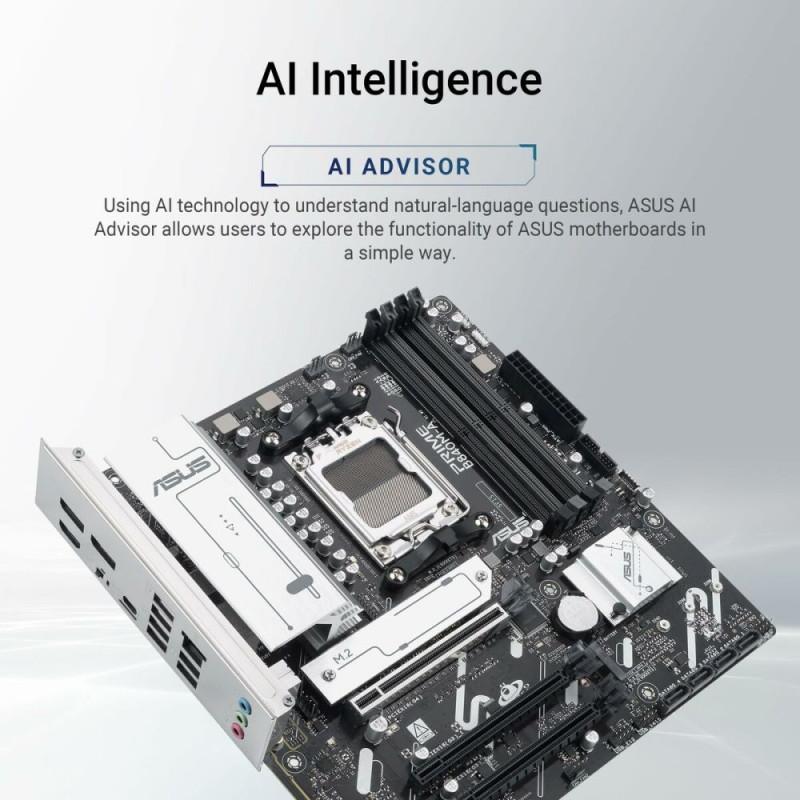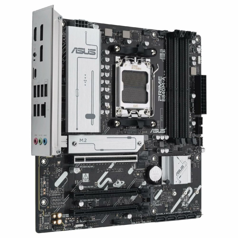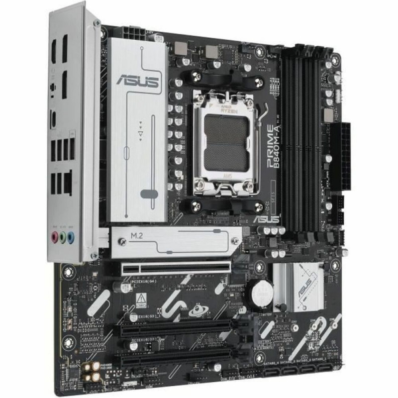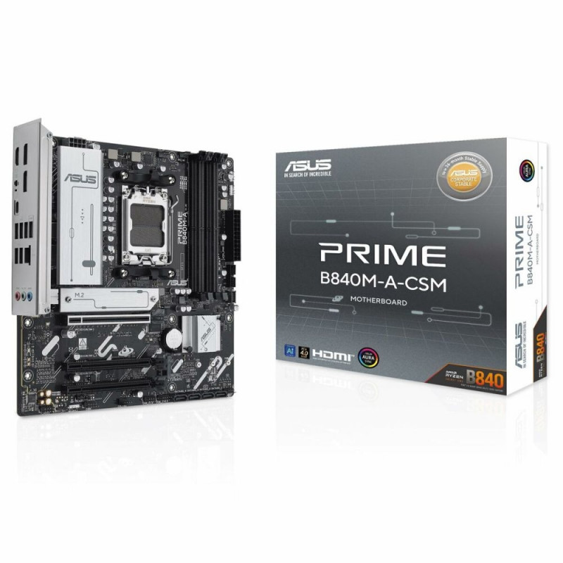 The Asus PRIME B840M-A-CSM motherboard is a motherboard specially designed to offer compatibility and performance with latest-generation processors thanks to its AMD AM5 socket. This MicroATX (mATX) form factor model provides an ideal balance between compact size and expansion capability, making it a versatile choice for desktop setups that require space efficiency without sacrificing essential features. It is equipped with an AMD B840 chipset, ensuring proper support for the new generation of AMD CPUs, allowing users to leverage advanced processor architectures and technologies for both everyday use and productivity tasks. Its gray design offers a sober aesthetic and easy integration into various types of cases. Additionally, it includes modern connectivity with HDMI, USB, and USB-C ports, facilitating connection of monitors, peripherals, and current external devices, ensuring compatibility with operating systems like Windows 10. The built-in installation guide allows quick and secure setup, ideal for users assembling their own PC or performing upgrades. The Asus PRIME B840M-A-CSM positions itself as a mid-range motherboard that combines support for the latest AMD technologies in a compact format, suitable for users seeking stability, balanced performance, and up-to-date connectivity on a reliable platform backed by a well-known brand in computer components.