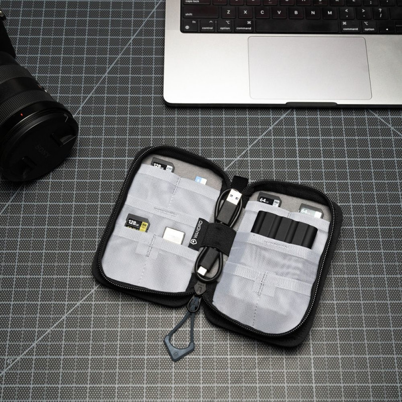 - Features multiple compartments with 8 small and 2 large mesh pockets for organized storage of various memory cards and cords.