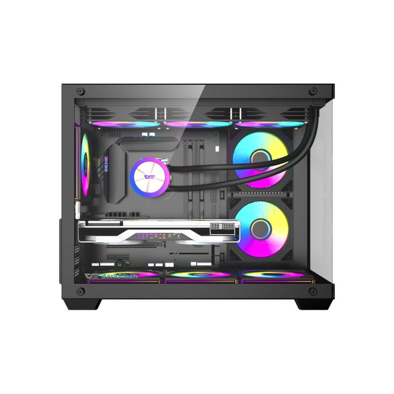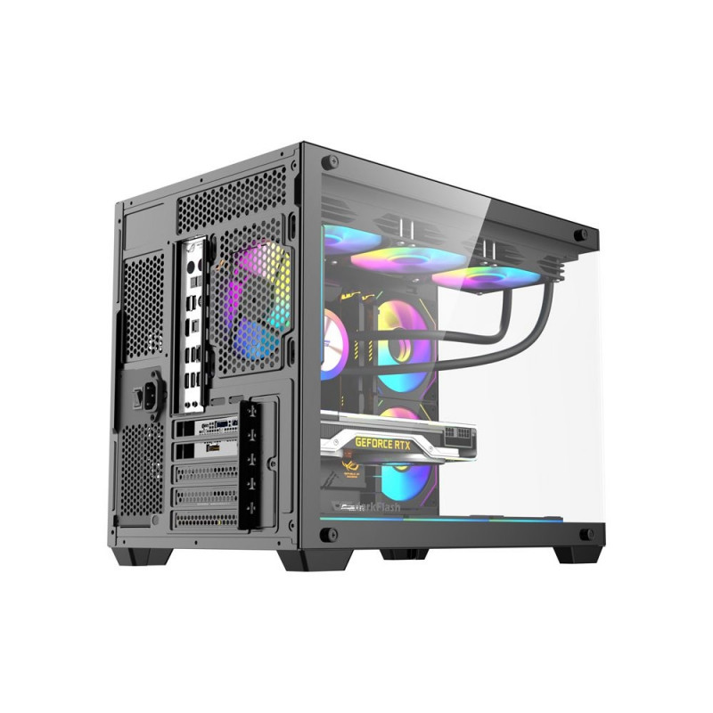 DarkFlash B275 PRO is a functional computer case that draws attention to its interior at first glance. The cornerless design provides a full 270° view of the components, and the six fans included in the set provide a ready-to-use and efficient cooling system as standard. While maintaining compact dimensions (354 x 275 x 425 mm), this model offers space for graphics cards up to 410 mm in length, CPU cooling up to 160 mm in height, and two SSDs or one HDD. So you can easily create exactly the configuration you want!