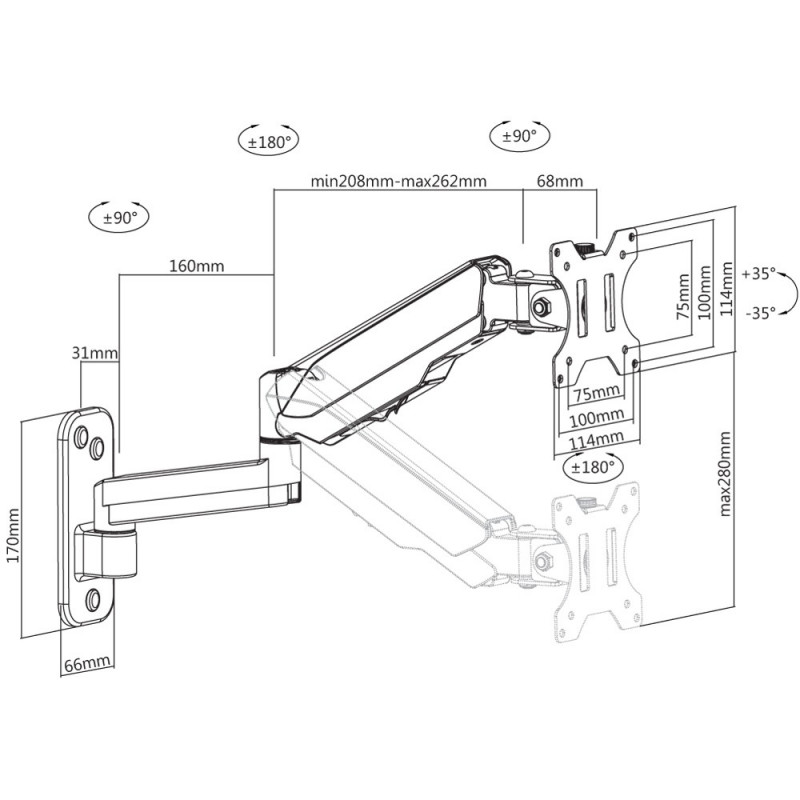 Techly 102864 Uchwyt ścienny TV LED/LCD 17"-32", na sprężynie gazowej, do 8 kg