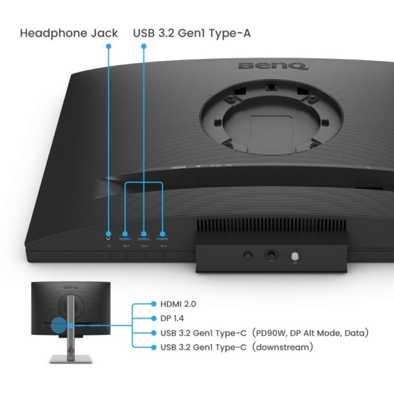 • Connections: 1x HDMI 2.0 / 1x DisplayPort 1.4 / headphone connection / 3x USB-A 3.2 Gen 1 / 1x USB-C