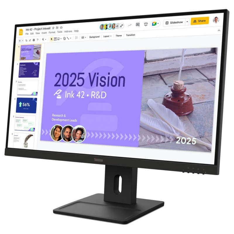 "Lenovo ThinkVision E27Q-40 Monitor. Bildschirmdiagonale: 68,6 cm (27""), Display-Auflösung: 2560 x 1440 Pixel, HD-Typ: Quad HD, Bildschirmtechnologie: LCD, Reaktionszeit: 6 ms, Natives Seitenverhältnis: 16:9, Bildwinkel, horizontal: 178°, Bildwinkel, vertikal: 178°. Eingebaute Lautsprecher. VESA-Halterung, Höhenverstellung. Produktfarbe: Schwarz"