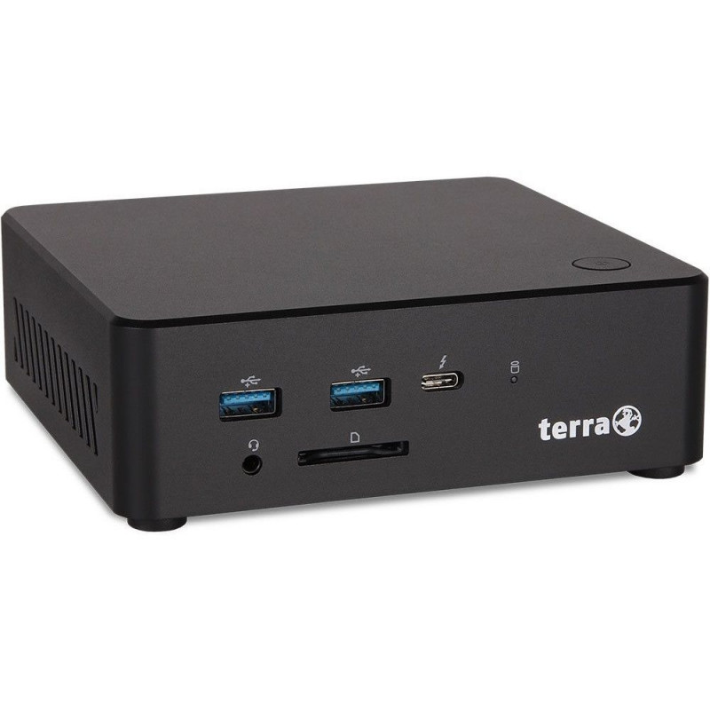 "TERRA 1000099. Prozessorfamilie: Intel® Core™ i3, Prozessor: i3-1315U. Speicherkapazität: 16 GB, Interner Speichertyp: DDR5-SDRAM, Speichertaktfrequenz: 5600 MHz. Gesamtspeicherkapazität: 500 GB, Speichermedien: SSD, Integrierter Kartenleser. Eingebautes Grafikkartenmodell: Intel Iris Xe Graphics. WLAN. Stromversorgung: 65 W. Gehäusetyp: Micro PC. Produkttyp: Mini-PC. Gewicht: 650 g. Produktfarbe: Schwarz"