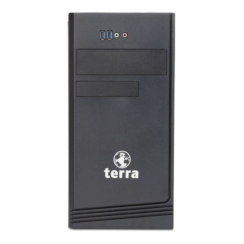"TERRA PC-HOME 4000. Prozessorfamilie: Intel® Core™ i3, Prozessor: i3-14100. Speicherkapazität: 8 GB, Interner Speichertyp: DDR5-SDRAM, Speichertaktfrequenz: 5600 MHz. Gesamtspeicherkapazität: 500 GB, Speichermedien: SSD. Eingebautes Grafikkartenmodell: Intel UHD Graphics 730. Installiertes Betriebssystem: Windows 11 Home. Stromversorgung: 350 W. Gehäusetyp: Mini Tower. Produkttyp: PC. Gewicht: 7 kg. Produktfarbe: Schwarz"