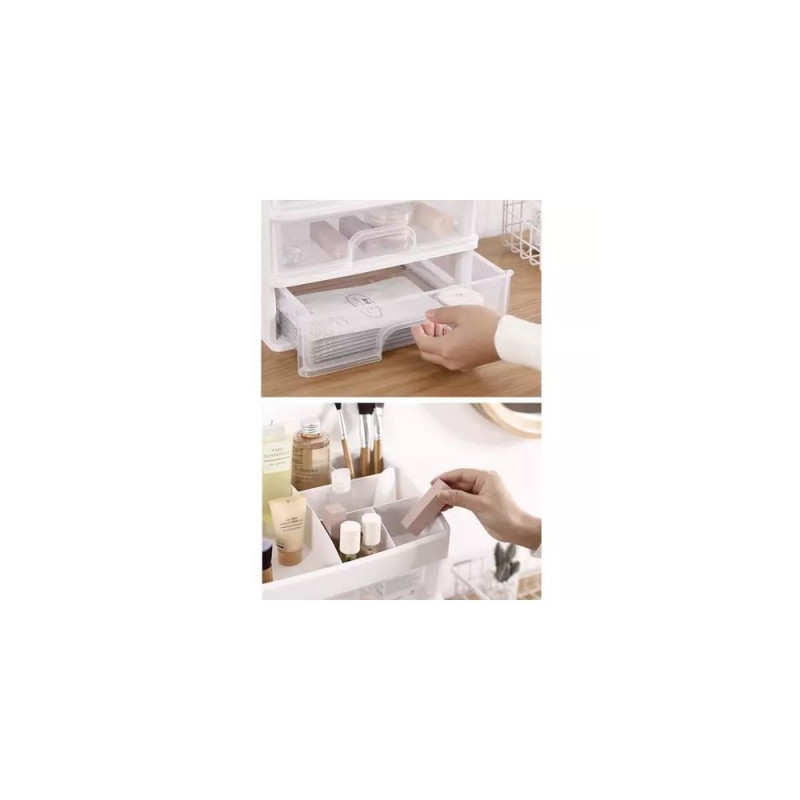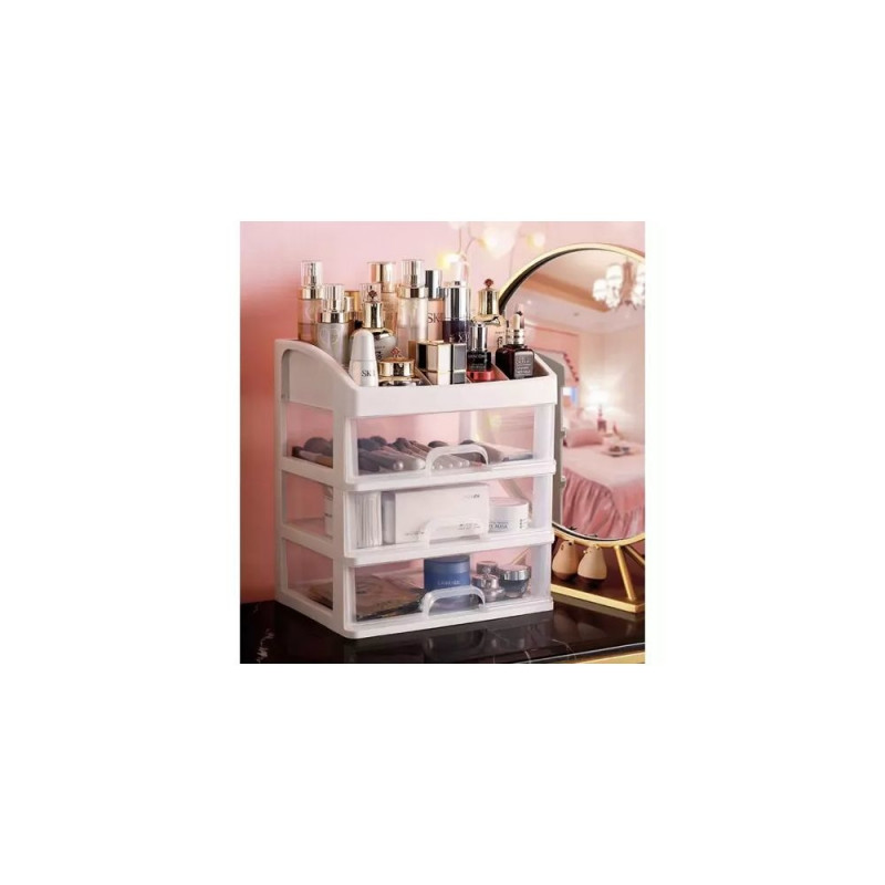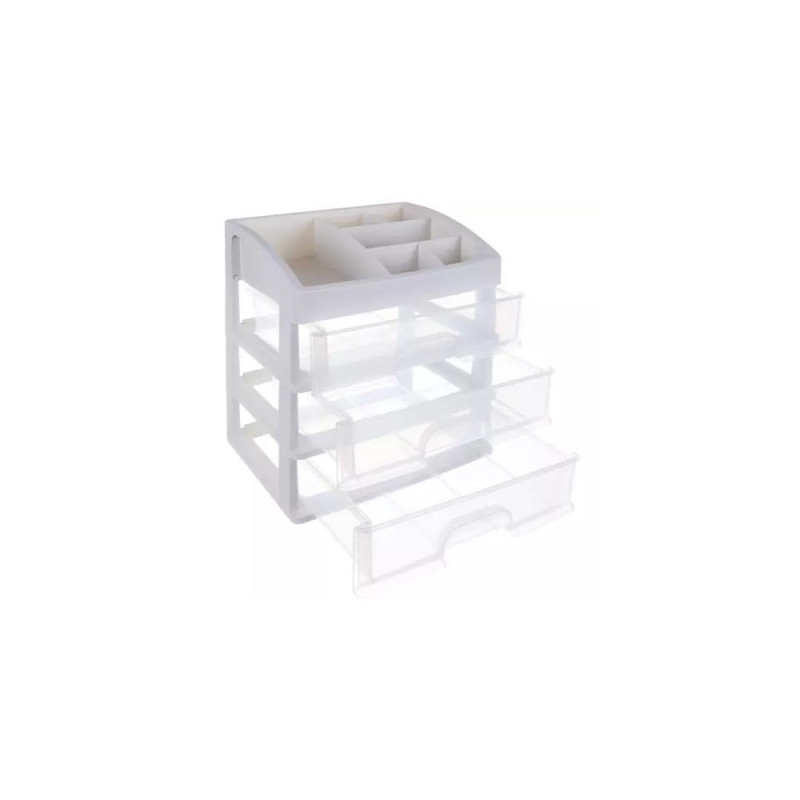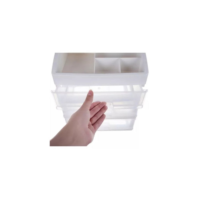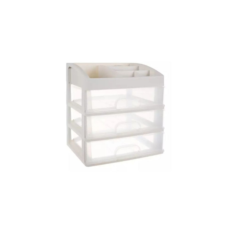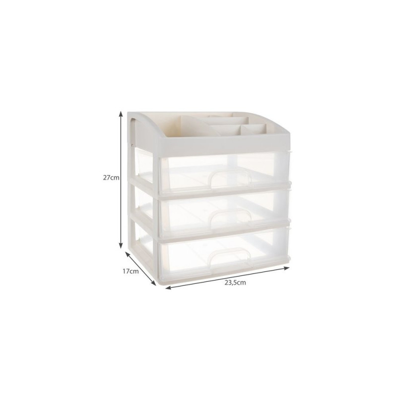 - 3 PRZEŹROCZYSTE SZUFLADY ? organizer został wykonany z transparentnego materiału, dzięki czemu dobrze widać, co jest w środku, a więc szybko można zlokalizować dany przedmiot, by po niego sięgnąć. Posiada 3 szuflady transparentne o tym samym wymiarze.