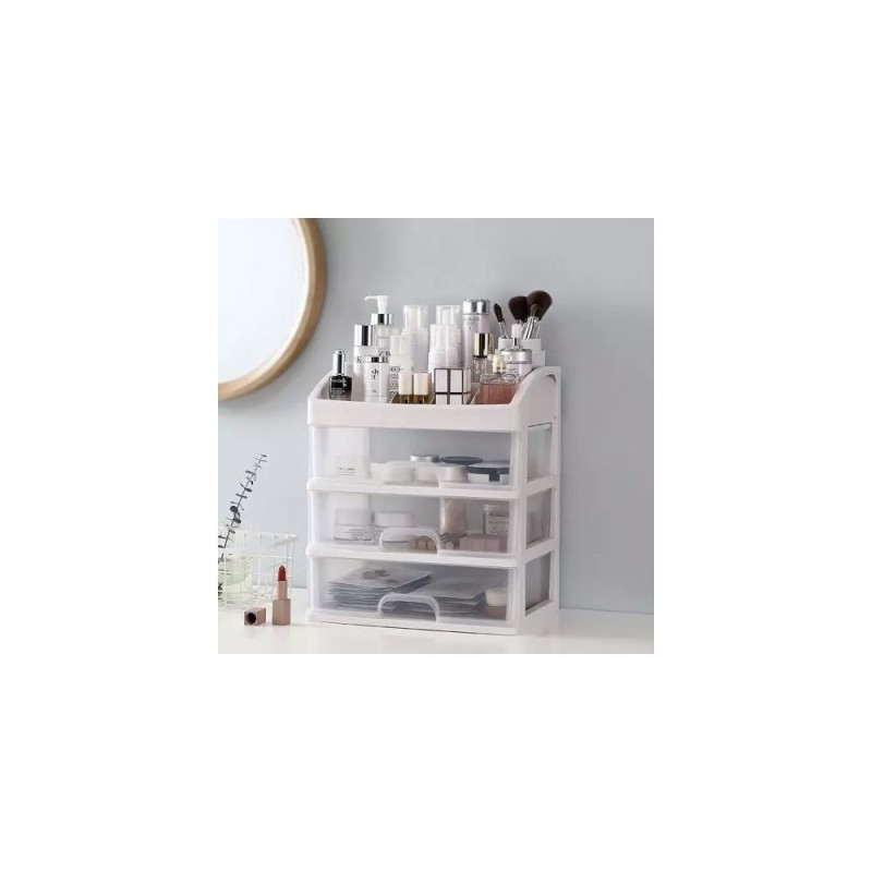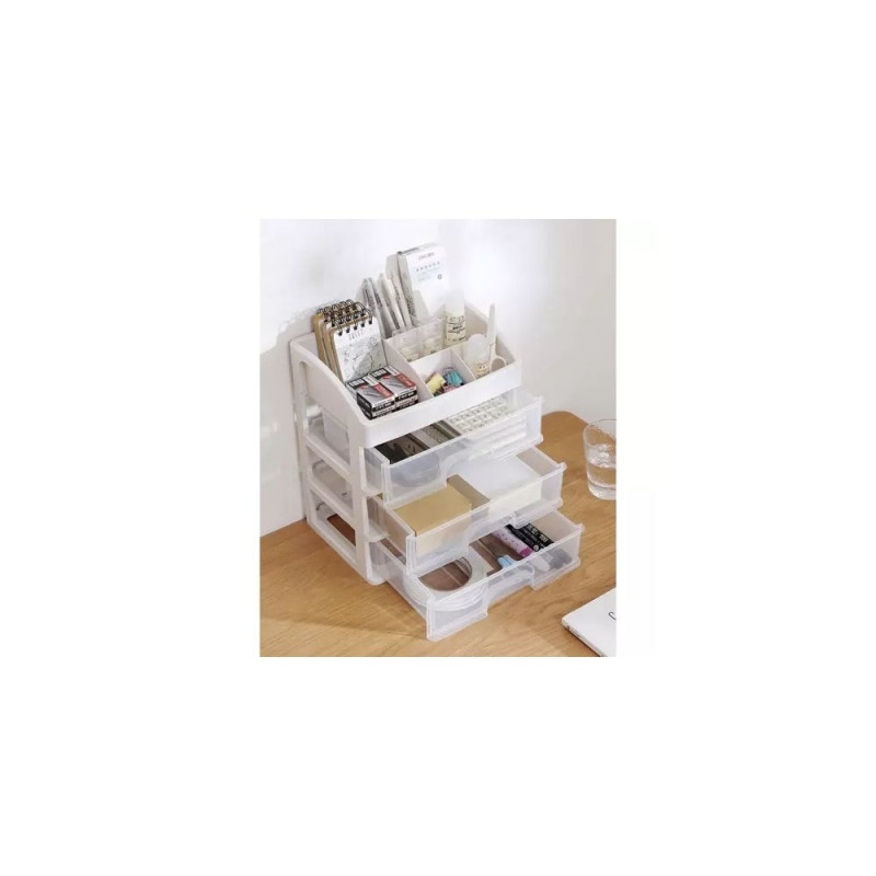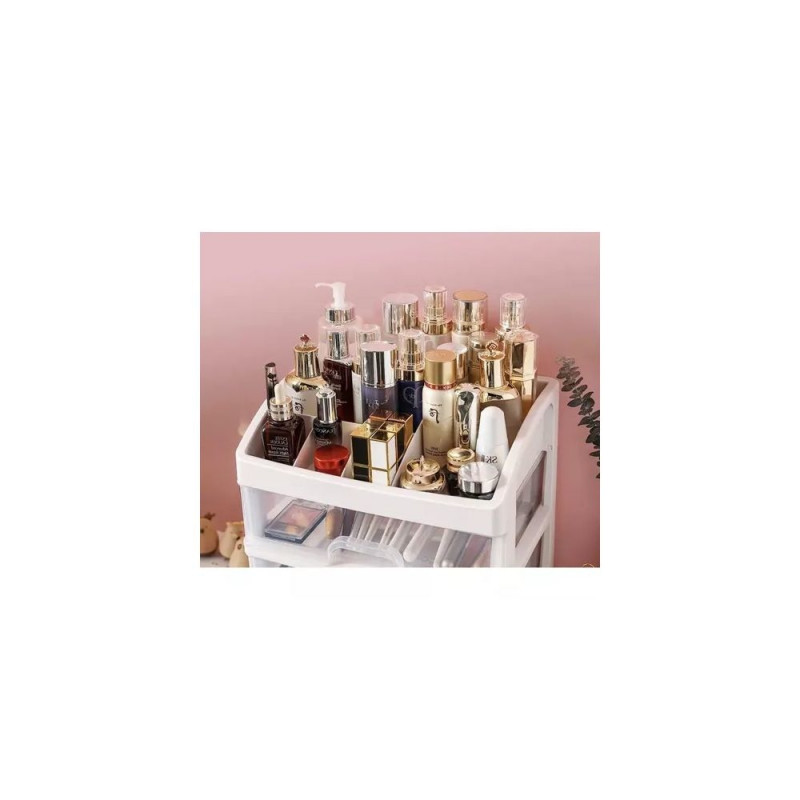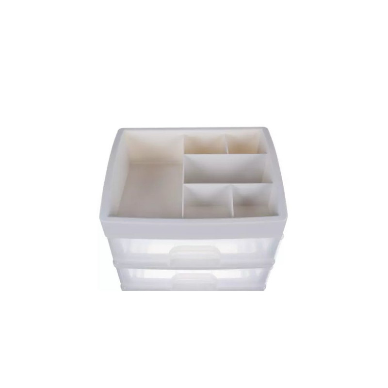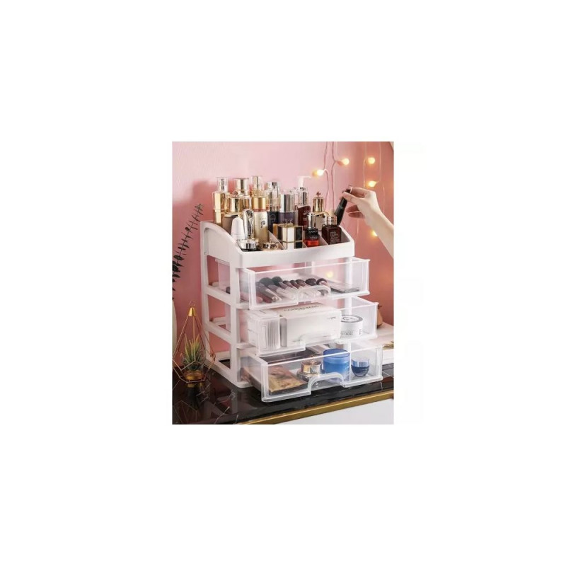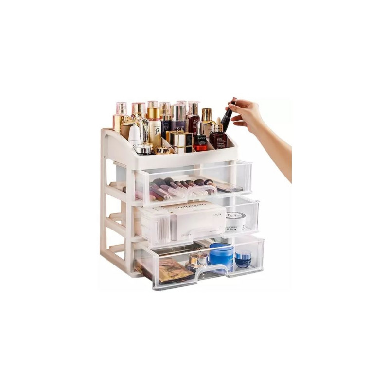 - 3 PRZEŹROCZYSTE SZUFLADY ? organizer został wykonany z transparentnego materiału, dzięki czemu dobrze widać, co jest w środku, a więc szybko można zlokalizować dany przedmiot, by po niego sięgnąć. Posiada 3 szuflady transparentne o tym samym wymiarze.