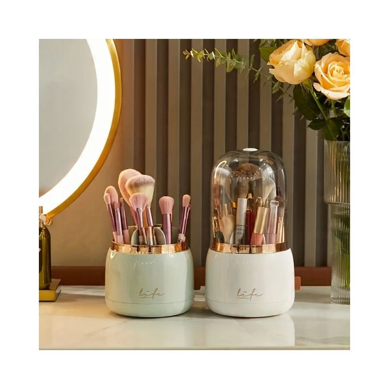 The rotating cosmetic brush box is a sleek and practical organizer that makes it easy to organize and access all of your cosmetic brushes and accessories.