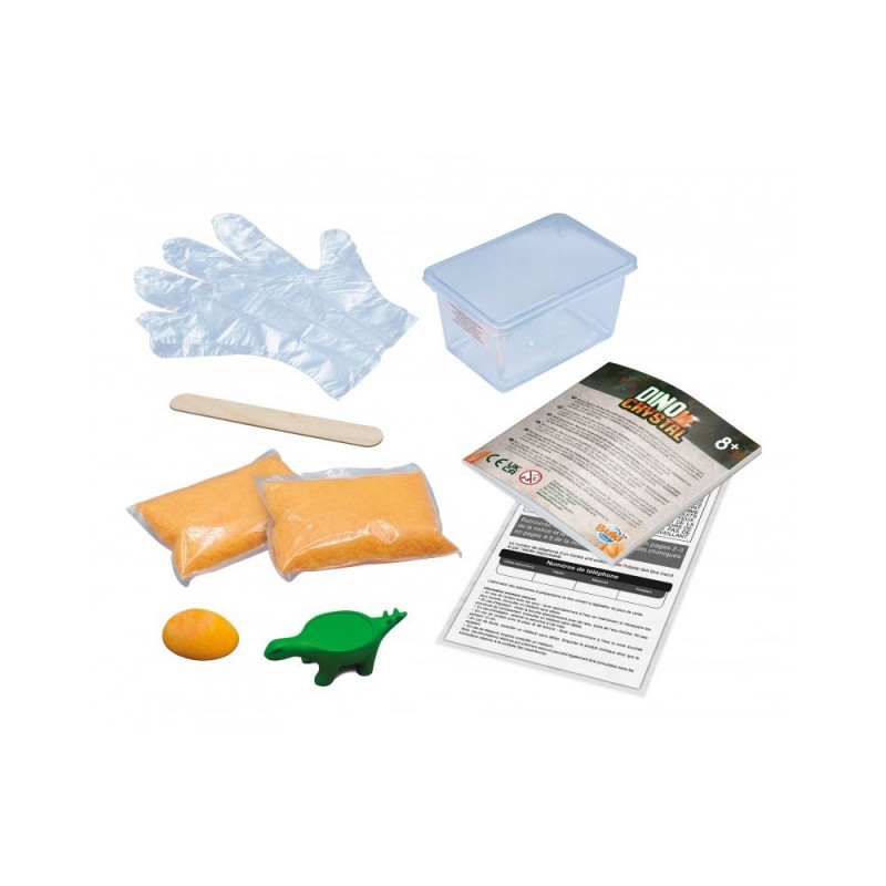 Included : dinosaur base, crystal powder, the growing beaker and 1 illustrated colour instructions.