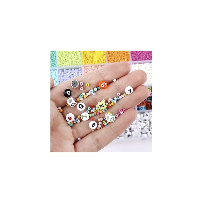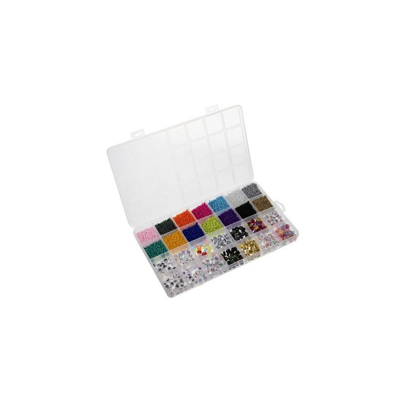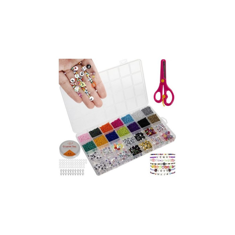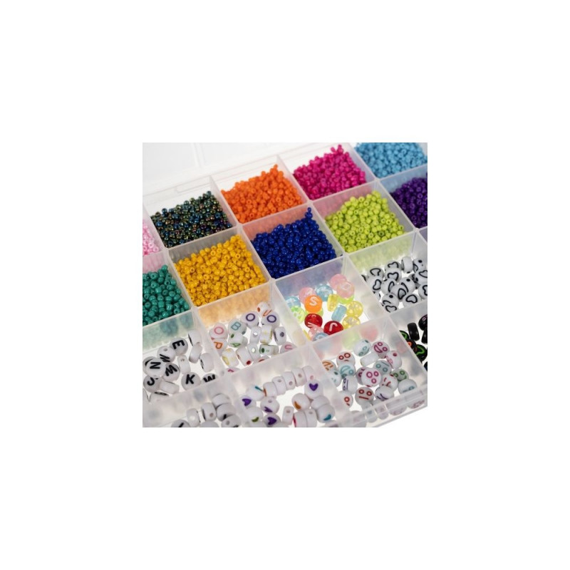 - ZESTAW XXL W ORGANIZERZE ? zestaw 10 000 elementów sprawi, że dziecko będzie mogło stworzyć biżuterię w różnych kształtach oraz z różnymi motywami. Do zestawu zostały dołączone: koraliki, żyłka, bezpieczne nożyczki, zapięcia.
