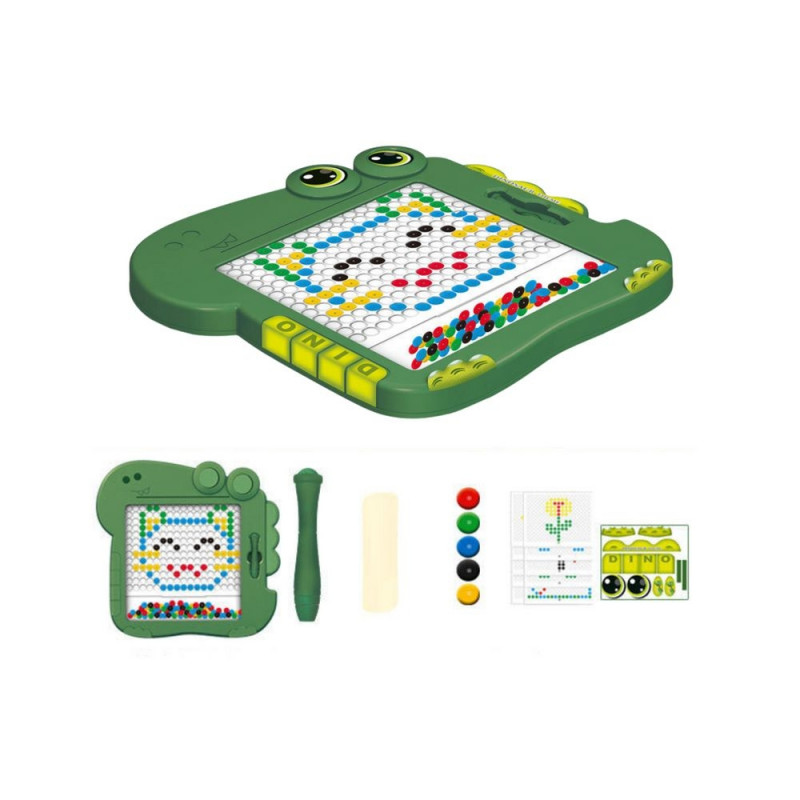 Aby jeszcze bardziej urozmaicić zabawę i inspirować dzieci do twórczych eksperymentów, do zestawu dołączona jest książeczka ze wzorami do układania obrazków na tablicy. Dzięki niej maluchy mogą odkrywać nowe możliwości i rozwijać swoje umiejętności artystyczne, tworząc kolejne fascynujące kompozycje.