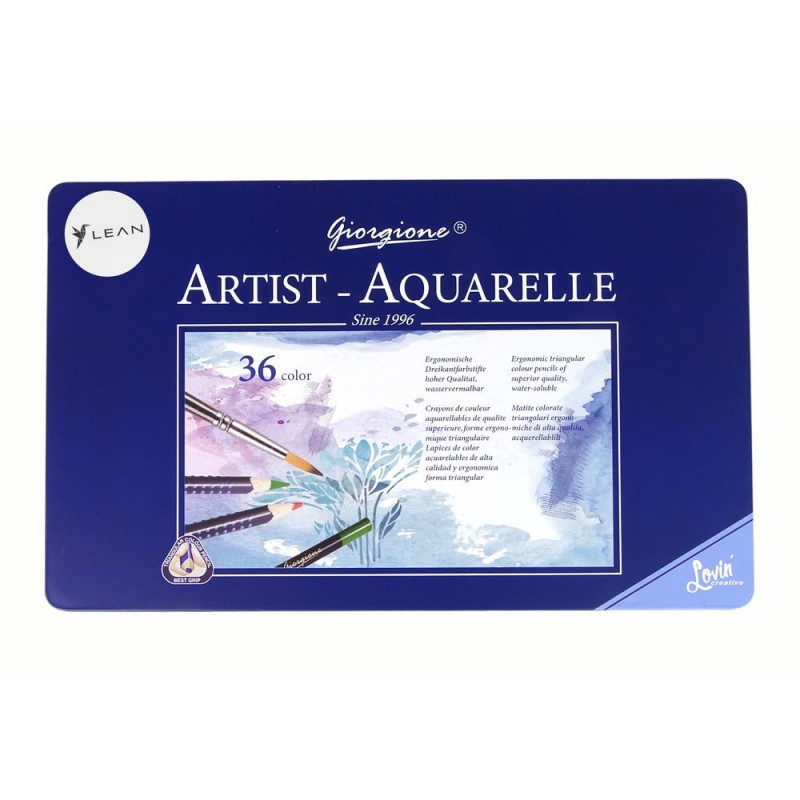 Zestaw 36 Kredek Akwarelowych Metalowy Pojemnik