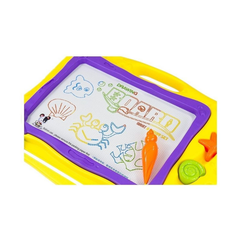 Jak działa ta magiczna tablica magnetyczna? To bardzo prosta zabawka edukacyjna. Pod powierzchnią ekranu umieszczone są opiłki żelaza, które w trakcie rysowania specjalnym rysikiem w kształcie muszelki układają się w stworzony przez dziecko wzór. Rysunki mogą być wykonane dowolną ilość razy ? by zmazać obrazek, wystarczy tylko delikatnie przesunąć suwak umieszczony w dolnej części przedmiotu. By magnetyczny znikopis mógł służyć dziecku przez długi czas, należy korzystać z niego tylko za pomocą dołączonego do zestawu magnetycznego rysika. Pod żadnym względem nie wolno używać na ekranie klasycznych długopisów, pisaków bądź piór atramentowych.