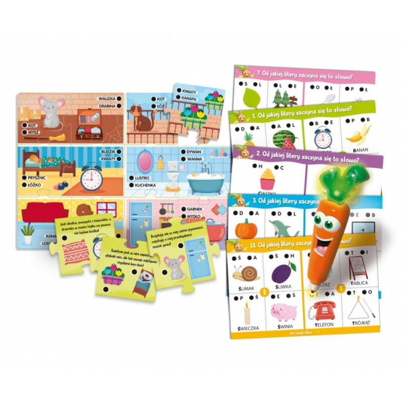 Wiele interaktywnych kart do nauki alfabetu i odkrywania wielu prostych sĹĂłw w towarzystwie mĂłwiÄcej i ĹwiecÄcej Carotiny! Opakowanie zawiera rĂłwnieĹź puzzle z domem z wesoĹymi zagadkami.