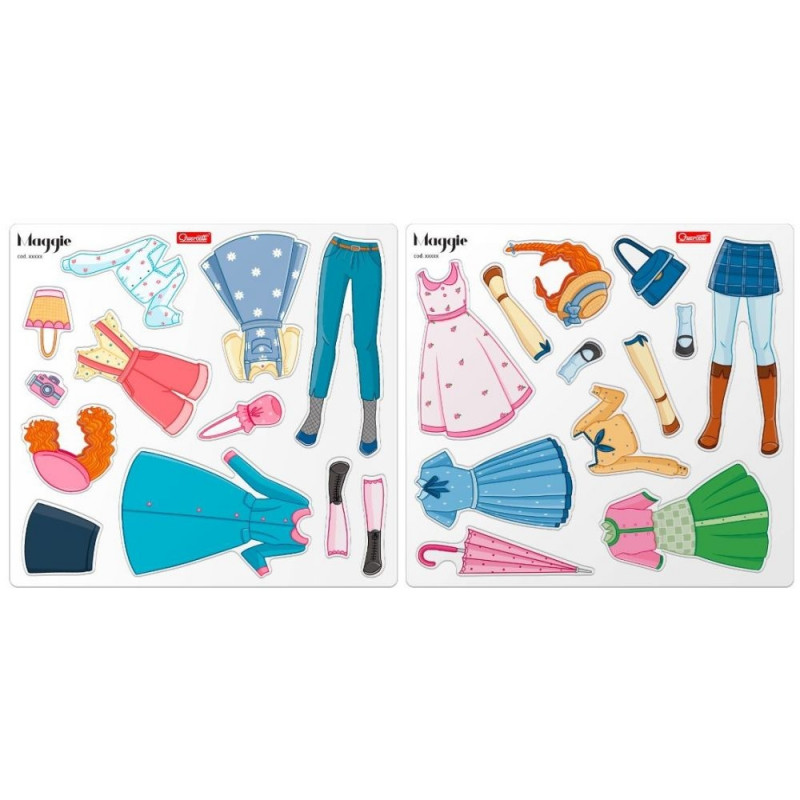Nowa odsłona produktu i wiele nowych magnetycznych sukienek, które można ze sobą łączyć, aby stworzyć idealny strój. Zestaw zawiera magnetyczną lalkę Maggie. W opakowaniu znajduje się aż 29 magnetycznych elementów, które można ze sobą dowolnie zestawiać, by tworzyć olśniewające kreacje. Wszystkie zestawy z Magnetic Fashion są kompatybilne i umożliwiają wspaniałą i niezwykle kreatywną zabawę podczas tworzenia kreacji.