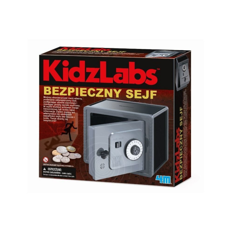 Dzięki niemu skonstruujesz swój własny, podwójnie działający sejf. Złóż elementy w jedną całość, podłącz obwód alarmowy i zamontuj prosty zamek szyfrowy. W razie problemów pomoże Ci przystępna instrukcja. W sejfie możesz schować swoje kieszonkowe lub ściśle tajne informacje. Żaden szpieg ani włamywacz nie zdobędzie zawartości sejfu bez klucza i kodu. Twoje skarby są bezpieczne!