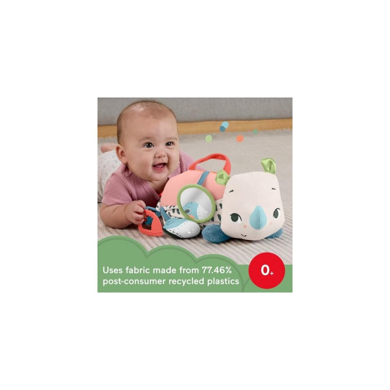 Fisher-Price Planet Friends Tummy Time Roaming Rhino Plush Sensory Toy for Newborn Babies