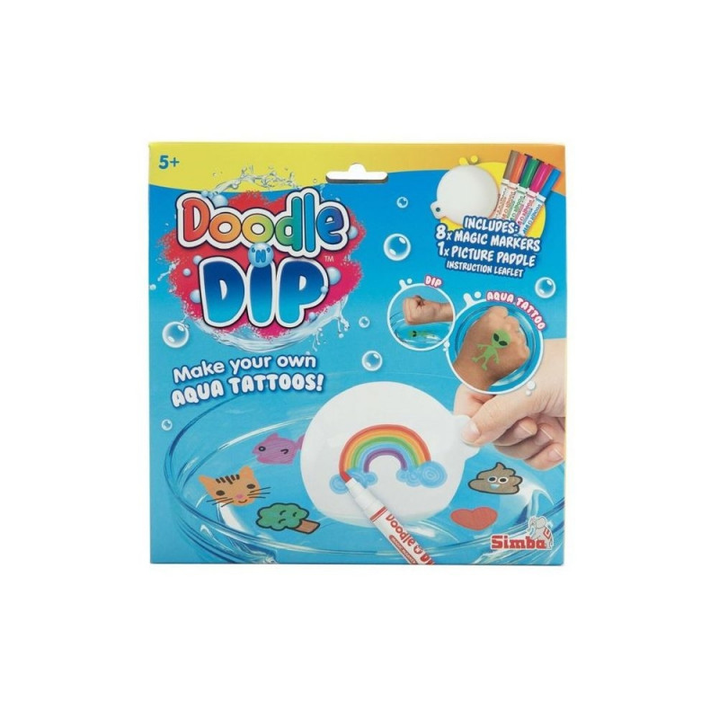Dzięki magicznej technice maluj i zanurzaj stworzenie własnego tatuażu jest łatwiejsze niż kiedykolwiek wcześniej. Za pomocą 8 kolorowych pisaków Aqua Magic malujesz na podkładce swój ulubiony motyw, ożywiasz go w wodzie i następnie aplikujesz wzór na skóry całkowicie przyjazny dla skóry, zmywalny i bez kleju!