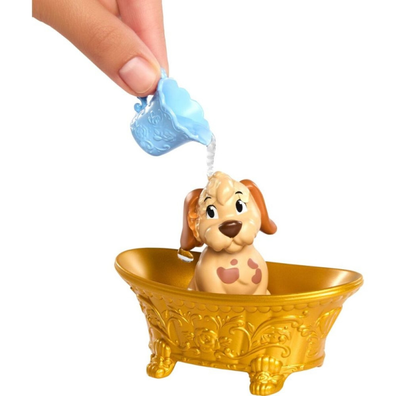 The Princess Belle and Her Dog Grooming Set from the Disney Princess brand is a children's doll made of plastic, which includes a bathtub specially designed to recreate moments of care and cleaning for the princess and her pet. This playset allows children to interact creatively, encouraging imaginative play with figures of classic Disney characters, a feature that sets it apart within the doll category. The durable and lightweight plastic texture ensures comfortable handling during play while making cleaning and maintenance easy. Its design includes details that evoke the setting of the original tales, adding a touch of fantasy and nostalgia. Additionally, this set provides educational value by promoting social skills and storytelling through the simulation of everyday grooming situations. Overall, this product combines entertainment with quality materials, making it a suitable choice for those seeking a complete and safe play experience with the well-known Disney Princess theme.